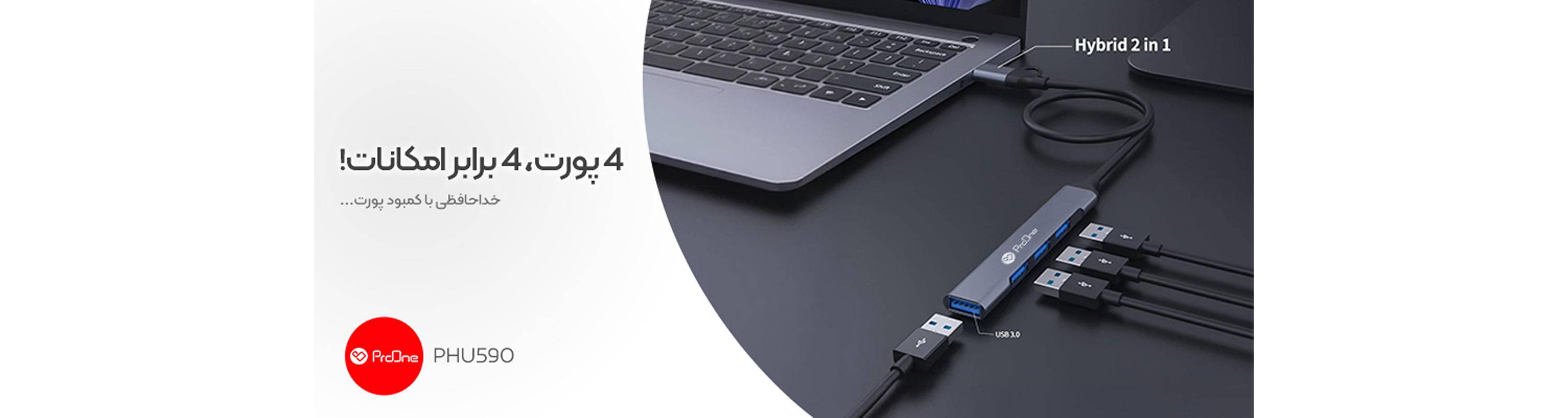 داشتن یک هاب باکیفیت میتواند کمک بسزایی در انجام امور به شما برساند. هاب پرووان مدل PHU590 یک هاب با 4 خروجی مفید است.این مدل دارای طراحی زیبا و کیفیت بالا است. همچنین کابل نایلونی بافته شده و اتصال بدون قطعی از دیگر مزیتهای این هاب هستند. می توانید از این هاب برای پخش تصاویر / فیلم های با کیفیت بالا اتصال دستگاه های جانبی به گوشی همراه،لپ تاب یا تلویزیون و شارژ همزمان لپ تاپ استفاده کنید. این هاب قابلیت انتقال اطلاعات،اتصال موس و کیبورد، پخش فیلم ها و تصاویر از طریق گوشی همراه به لپ تاب ، تلویزیون و پرژکتور را دارد. همچنین دارای 50 سانتی متر کابل می باشد.